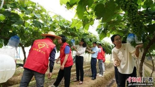 日前,那陽鎮人民政府、中國郵政橫州市分公司、中國人保財險橫州支公司在那陽鎮莫渡村聯合舉行“助農惠農 助力鄉村振興”葡萄基地揭牌儀式,為村中葡萄種植戶發放套袋,并提供存貸款業務咨詢、辦卡、農資銷售等方面的服務。