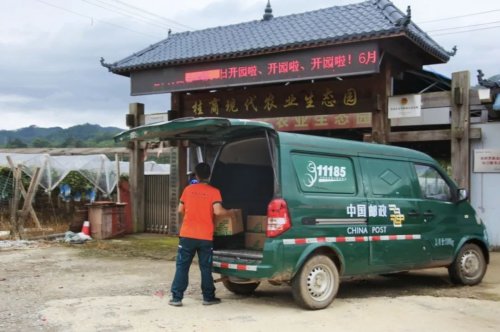 在廣西憑祥桂商現代農業生態園里,郵政工作人員正將一箱箱打包好的葡萄搬上郵車,準備發往各地。