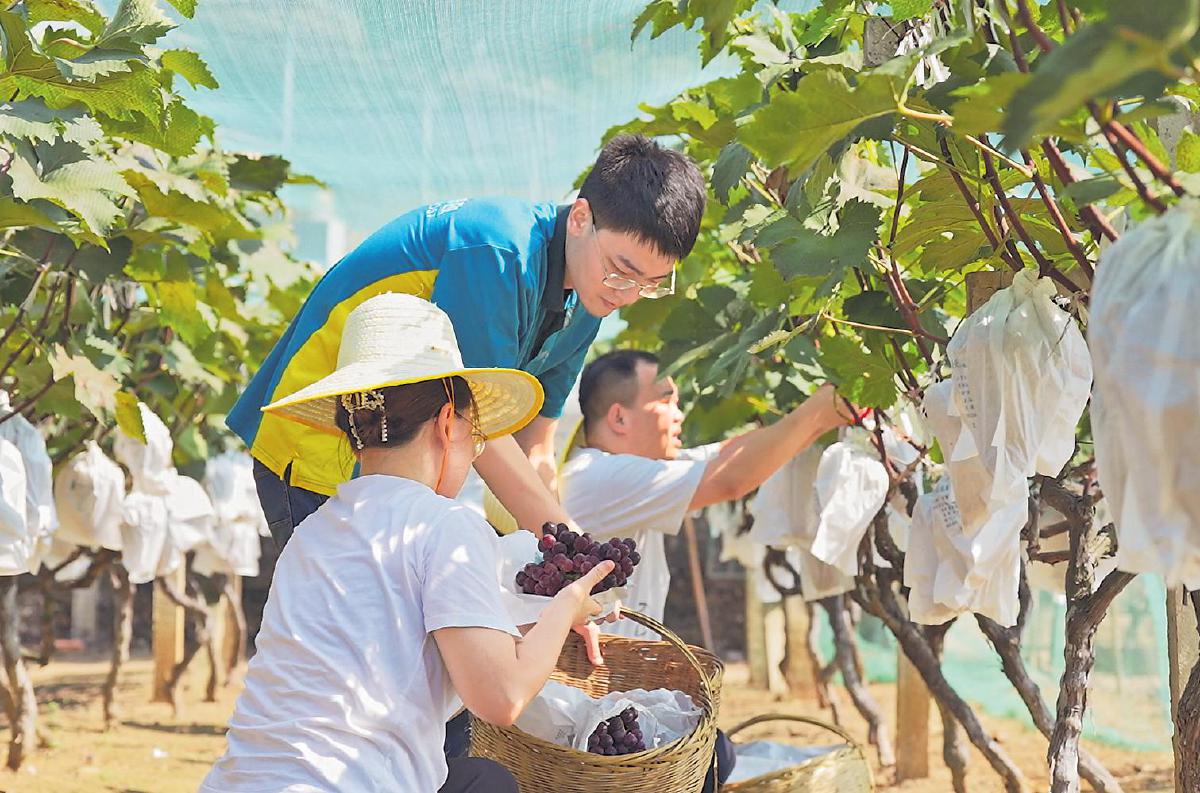 日前,湖北省荊門市郵政分公司助農(nóng)服務(wù)隊(duì)來到漳河鎮(zhèn)京河葡萄種植基地,幫助一位身體有殘疾的種植者采摘、裝箱、打包、運(yùn)輸葡萄,并通過“基地直播+社區(qū)團(tuán)購”的方式,助銷葡萄1300多斤。據(jù)悉,幫扶對象劉師傅是一位50多歲的殘疾人,因身體活動受限,自家種植的葡萄出現(xiàn)滯銷。荊門市分公司通過走訪了解到這一情況后及時伸出援助之手,解了劉師傅的燃眉之急,受到當(dāng)?shù)厝罕姷暮迷u。