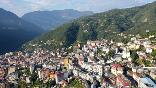 坐落在群山之間的涼山州木里縣城
