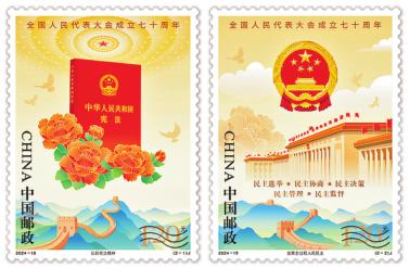 9月15日,《全國人民代表大會成立七十周年》紀念郵票將發行。