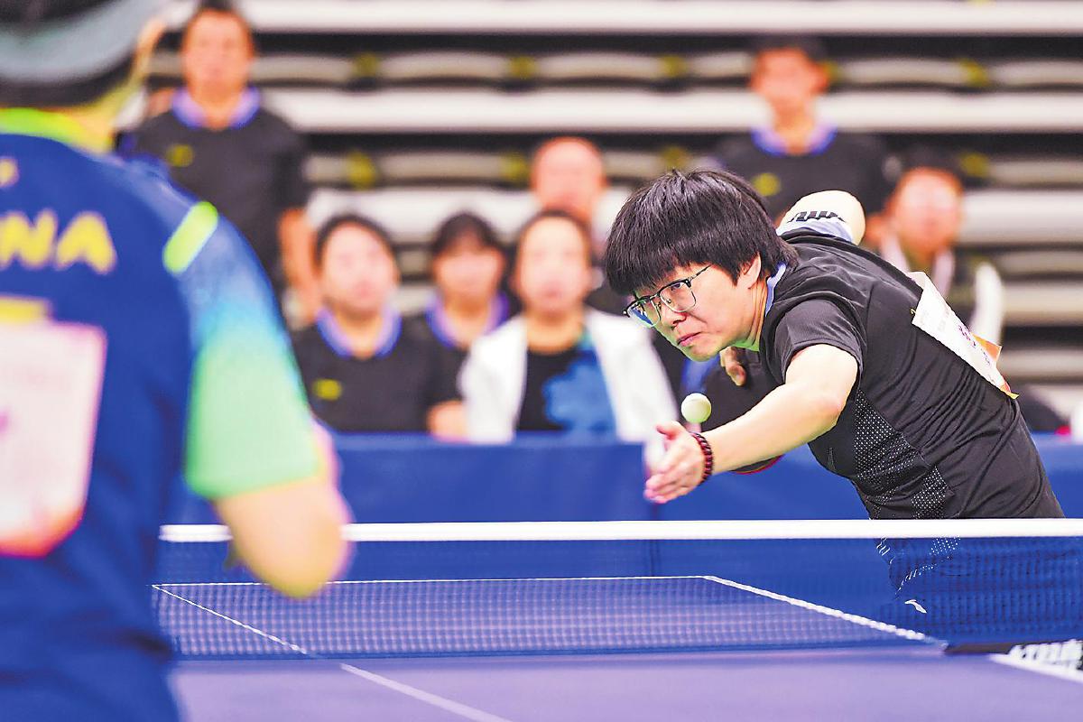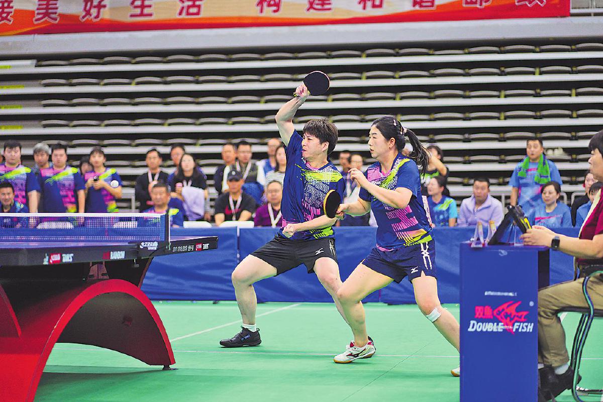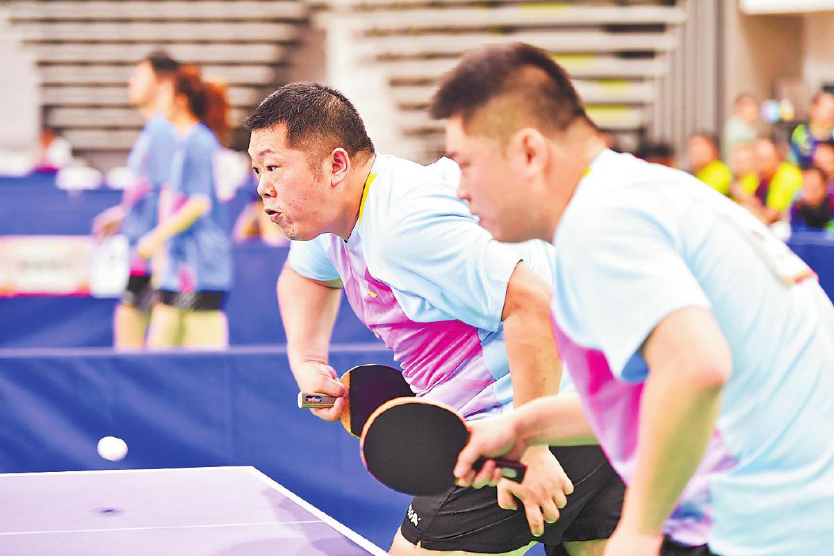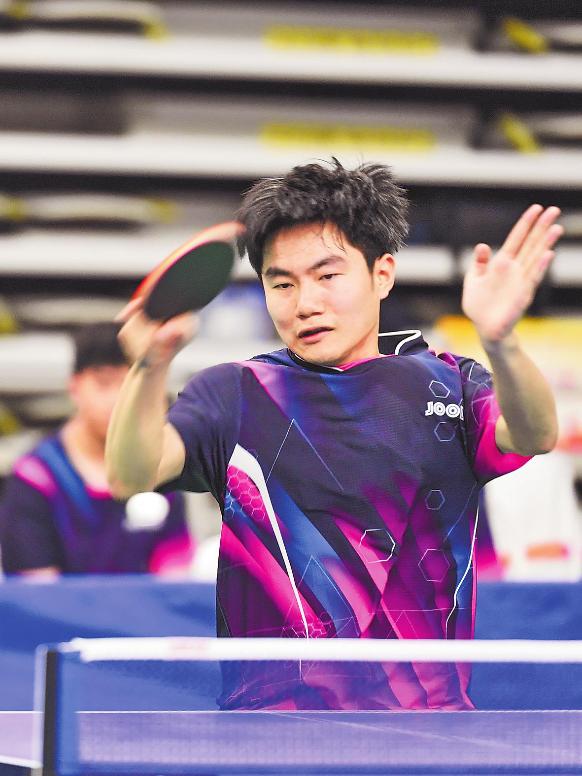 本次比賽觀賞性、競(jìng)技性十足。賽場(chǎng)上,有面對(duì)臺(tái)風(fēng)肆虐依然堅(jiān)持訓(xùn)練迎戰(zhàn)比賽的隊(duì)伍,有連續(xù)奮戰(zhàn)四屆比賽即將退休的老將,有從國(guó)家隊(duì)、省隊(duì)退役帶傷上陣的斗士,有并肩作戰(zhàn)的夫妻檔,有接力傳承的老中青組合,匯聚起這場(chǎng)乒乓盛宴的強(qiáng)大陣容。來(lái)自江西郵政代表隊(duì)的劉羿和吳春顏是夫妻檔混雙組合,兩人在大學(xué)因乒乓球結(jié)緣,后來(lái)又成為工作上的同事,這次在賽場(chǎng)上更是展現(xiàn)出了伴侶間的默契。“我們非常了解彼此,很多時(shí)候心領(lǐng)神會(huì),能夠取長(zhǎng)補(bǔ)短。”劉羿如是說(shuō)。曾代表中國(guó)郵政出征“2020中國(guó)職工乒乓球聯(lián)賽”并斬獲“四金二銀一銅”戰(zhàn)績(jī)的選手們幾乎全部來(lái)到了賽場(chǎng),其中男單青年甲組冠軍蔡偉表示:“上次是對(duì)外比拼,這次是內(nèi)部競(jìng)技,友誼第一?!?/p>