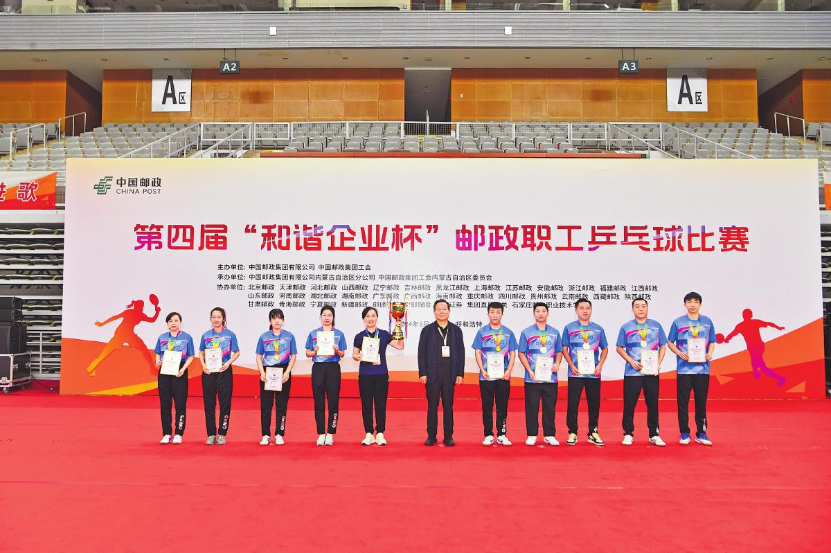 金秋9月,激情碰撞在美麗的北疆。9月11—13日,由中國(guó)郵政集團(tuán)有限公司、中國(guó)郵政集團(tuán)工會(huì)主辦,內(nèi)蒙古自治區(qū)郵政分公司、內(nèi)蒙古郵政工會(huì)承辦的第四屆“和諧企業(yè)杯”郵政職工乒乓球比賽在呼和浩特市火熱舉行。中國(guó)信息通信體育協(xié)會(huì)主席田利民及中國(guó)郵政集團(tuán)工會(huì)領(lǐng)導(dǎo)等出席開幕式并為獲獎(jiǎng)選手頒獎(jiǎng)。