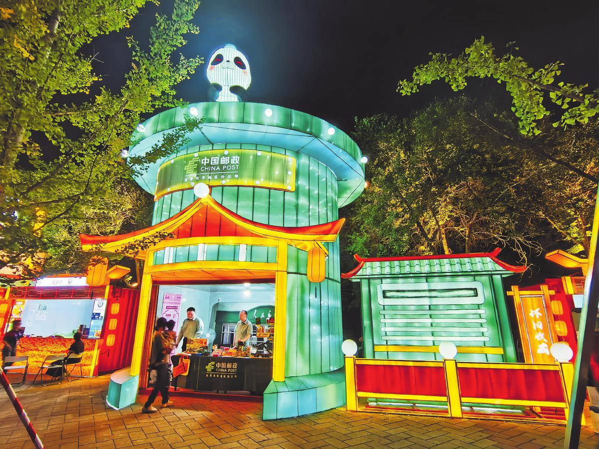 9月14日,北京首屆“京彩燈會”——園博園中秋國慶彩燈游園會盛大開幕。此次燈會規(guī)模宏大,是四川自貢燈會在北京的再度精彩呈現(xiàn),為廣大游客帶來了一場融合傳統(tǒng)文化與現(xiàn)代創(chuàng)意的視覺盛宴。燈會上,一組藍(lán)綠色調(diào)的郵筒花燈格外引人注目。這組花燈具有濃厚的中式建筑風(fēng)格,展現(xiàn)了郵筒的傳統(tǒng)形象,特別是上方的熊貓設(shè)計,憨態(tài)可掬。為更好地服務(wù)“京彩燈會”,北京市豐臺區(qū)郵政分公司專門設(shè)計了園博園燈會紀(jì)念章,還推出了一系列融合郵政傳統(tǒng)文化與現(xiàn)代元素的文創(chuàng)產(chǎn)品,深受游客的青睞。