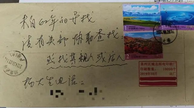 信封背面留的字是:來自62年的尋找,請有關部門協助查找,或找其親人、后人。