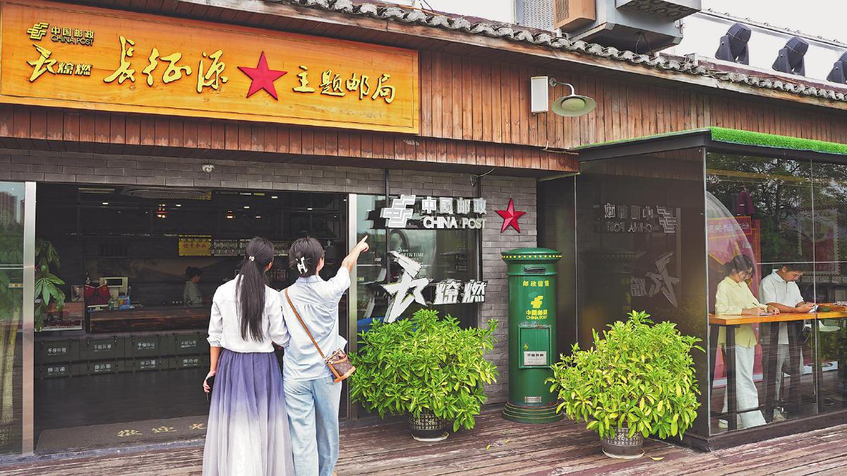 游客在長征源主題郵局參觀。