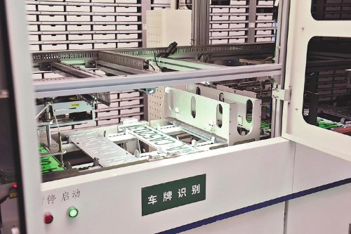 車牌自動封裝一體機正在作業(yè)。