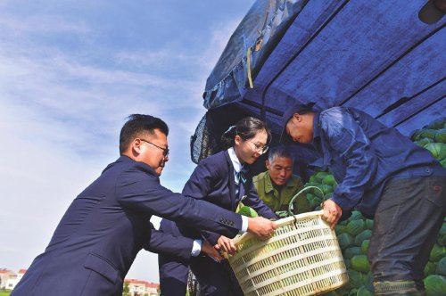 秋收時節,湖北省嘉魚縣潘家灣鎮十里蔬菜長廊中,綠油油的包菜一望無際,村民們正忙著砍菜、摘葉、背菜、裝車。郵儲銀行嘉魚縣支行客戶經理在對村民進行貸后回訪的同時,幫助村民摘葉、裝車。
