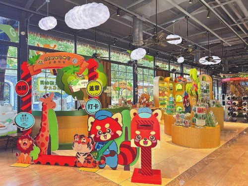 北京野生動物園主題郵局處于園內猛獸區下車站的顯眼位置,設計和裝飾上巧妙地融入了動物風格元素,仿佛是動物王國的入口。“主題郵局的設計,是吸引游客的一大亮點,以鮮明的動物IP形象為核心,比如萬人迷的‘小熊貓局長’、沉穩的‘卡皮巴拉郵遞員’以及身手靈活的‘黑猩猩快遞員’等。各種動物元素和郵政元素的結合,讓游客在體驗郵政服務的同時,也能享受無盡樂趣。”北京野生動物園主題郵局負責人高茜介紹道。