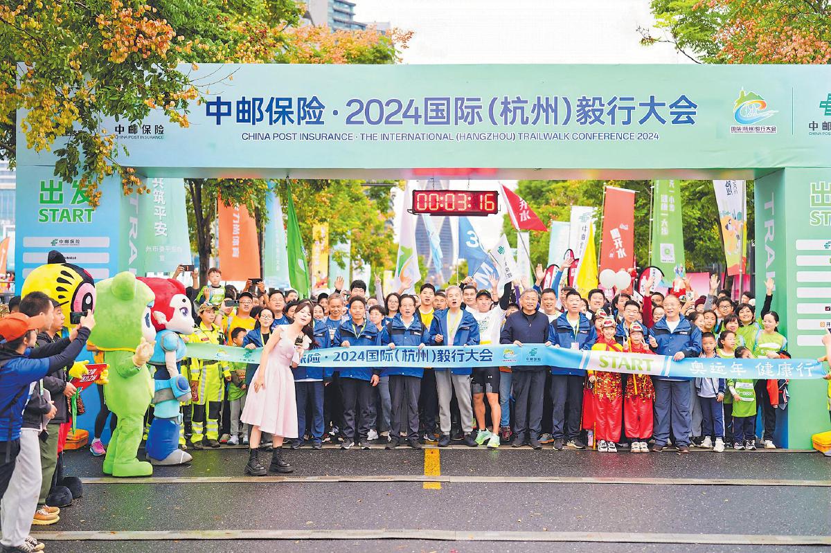 10月27日上午,由中郵保險獨家冠名的中郵保險·2024國際(杭州)毅行大會在浙江省杭州市錢江世紀公園大草坪拉開帷幕。15000多名熱愛運動與健身的市民歡樂相聚,“毅”起激情開走。中郵人壽保險股份有限公司董事長韓廣岳受邀出席開幕儀式,并與杭州市副市長陳衛強、杭州市政協副主席許明和馮仁強、杭州市委宣傳部常務副部長龔志南、杭州市體育局局長楊英英、杭州市政法委副書記康健共同為大會打響發令槍。