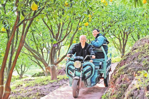 下午6點,潘高雄和同事們的郵車來到最后一站。72歲的鄧步萍和老伴種植了200多棵柚子樹,當天70多件柚子郵件都是寄往重慶的。鄧步萍告訴采訪組,“我們從往外寄柚子開始,用的就是郵政渠道”。