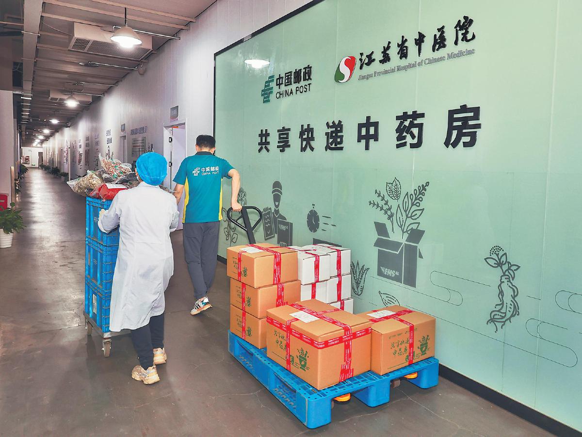 江蘇郵政與江蘇省中醫(yī)院聯(lián)手建成“共享快遞中藥房”,緩解患者焦慮,提升醫(yī)院效能。 □柏濱豐 攝