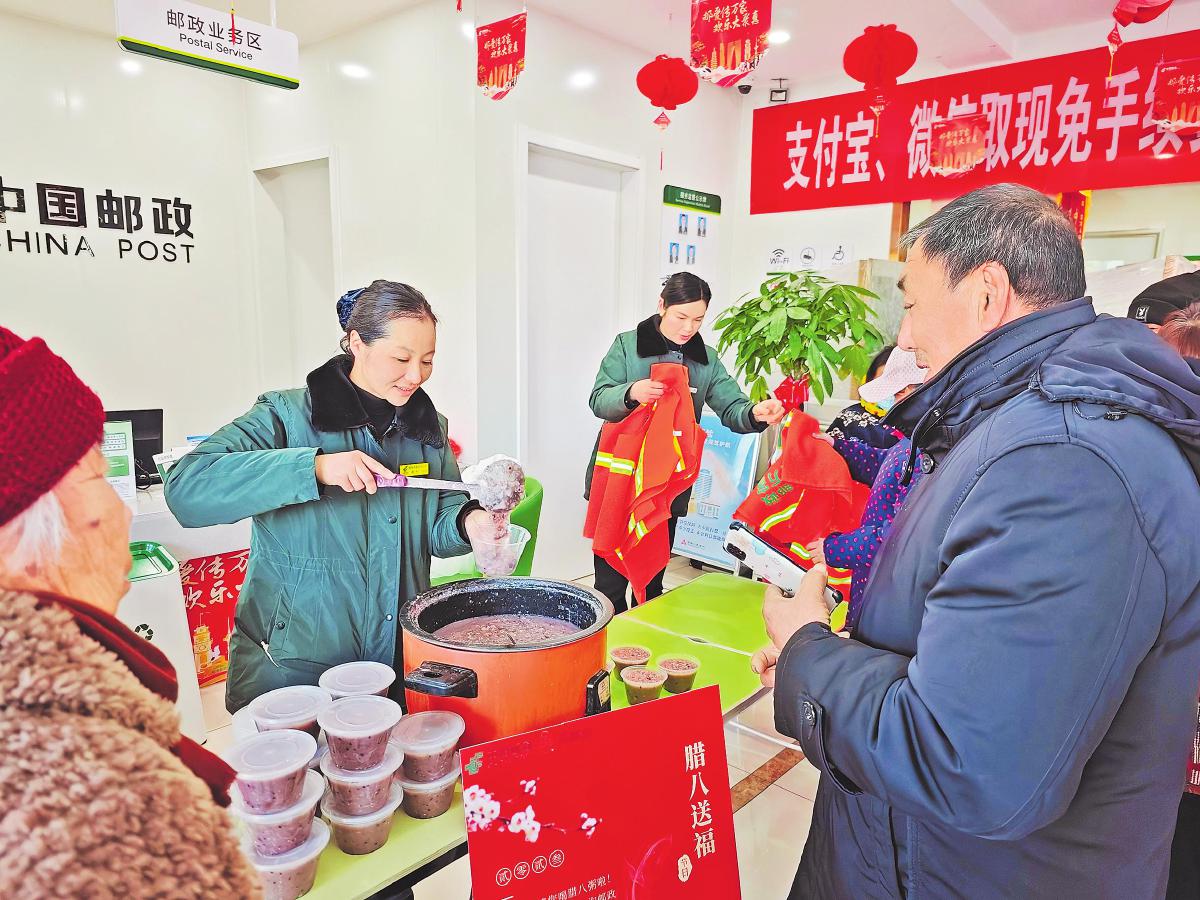 1月7日一早,江蘇省灌南縣郵政分公司九隊(duì)支局聯(lián)合當(dāng)?shù)丨h(huán)衛(wèi)部門舉辦“情暖臘八,‘郵’愛(ài)你我”活動(dòng)。該支局精心熬制了臘八粥,邀請(qǐng)新老客戶和環(huán)衛(wèi)工人免費(fèi)品嘗,并為環(huán)衛(wèi)工人贈(zèng)送專屬愛(ài)心馬甲,共同感受傳統(tǒng)節(jié)日的喜慶氛圍。同時(shí),支局工作人員還現(xiàn)場(chǎng)講解郵政金融知識(shí),開(kāi)展反詐宣傳,增進(jìn)了與客戶的交流。