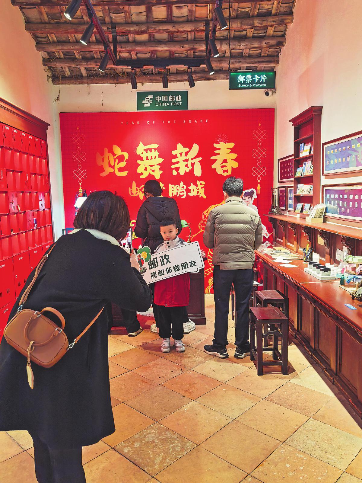 充滿年味的時光郵亭成為游客打卡留念的熱門地點。□李偉東 攝