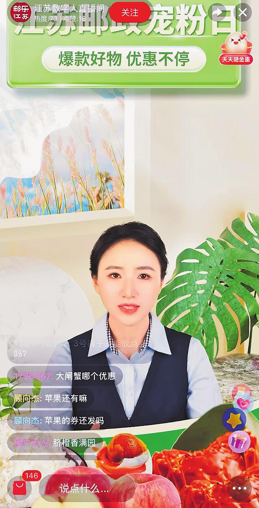直播中的江蘇郵政數字人主播。