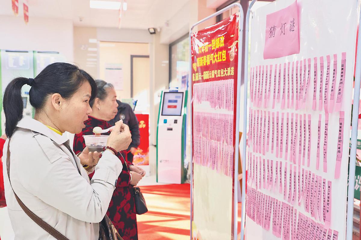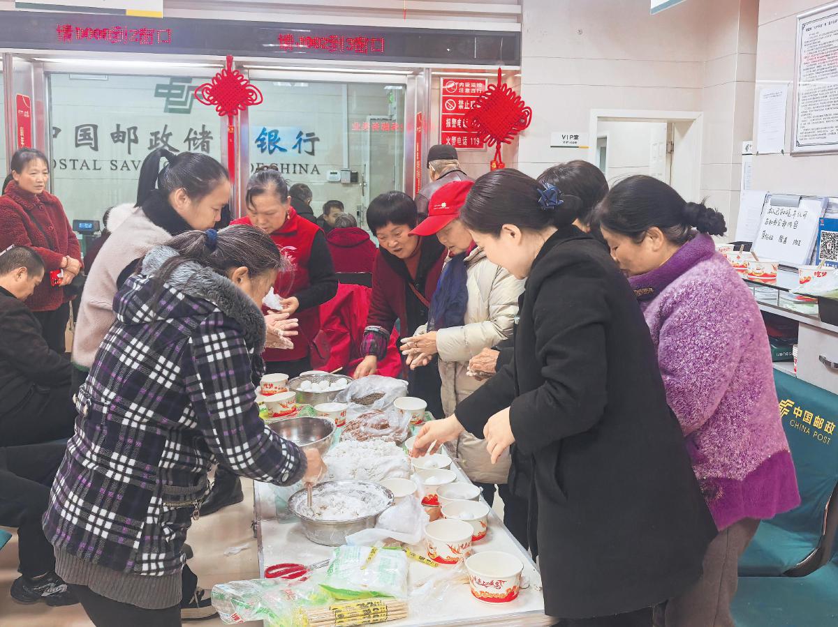 “謝謝你們!吃了這碗湯圓,渾身都熱乎了!”前來廣西壯族自治區貴港市郵政分公司和平路支局辦理業務的李阿姨對工作人員表示感謝。2月12日,正值元宵佳節,貴港市分公司在各網點組織職工為客戶送上一碗碗熱氣騰騰的湯圓,還開展了猜謎語等活動,為大家獻上團圓、平安的美好祝福。一個個湯圓甜在嘴里、暖在心頭,客戶對郵政的愛心舉動贊不絕口。□覃東新 攝影報道