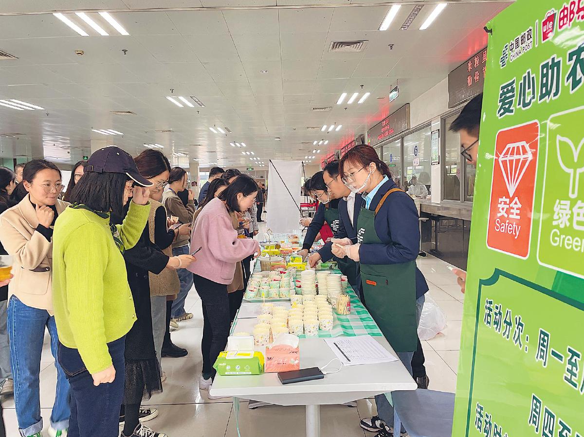 自2024年4月起,海門區分公司發力社區團購助力鄉村振興,積極打造本地“食堂生態圈”,將自提點開設到政企合作單位的食堂內。該分公司為每家單位單獨建立助農社區團購微信群,并個性化定制每周“自提日”。郵政人員定期優選應季、暢銷產品上架平臺,發布在各個團購群內進行接龍下單?!白蕴崛铡碑斕焐衔纾r產品就通過郵政同城寄遞配送至各單位食堂。截至2024年底,該分公司共在25家單位食堂開設自提點,為2600余名員工提供“食堂團購”自提服務。