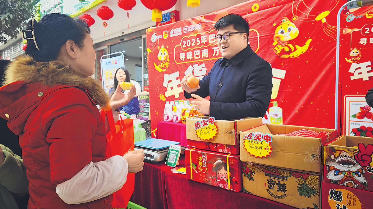 春節前,在重慶市巴南區惠民郵政所門前,大紅燈籠高高掛起,空氣中彌漫著濃濃的年味兒和阿克蘇蘋果的清香,這是重慶市巴南片區郵政分公司舉辦的“郵政年貨節”活動現場。