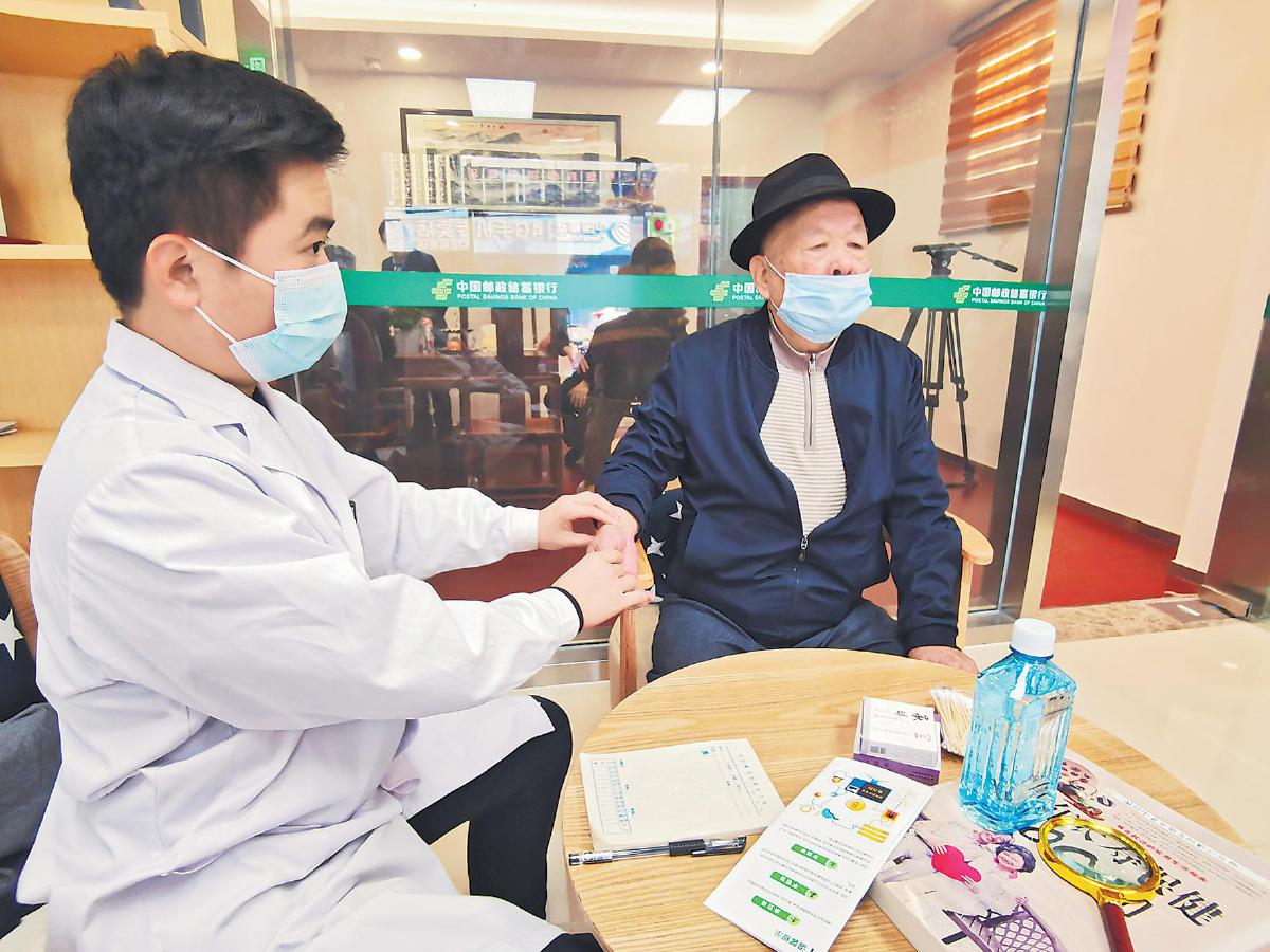 老年客戶參加?xùn)|莊支行組織的健康義診活動。