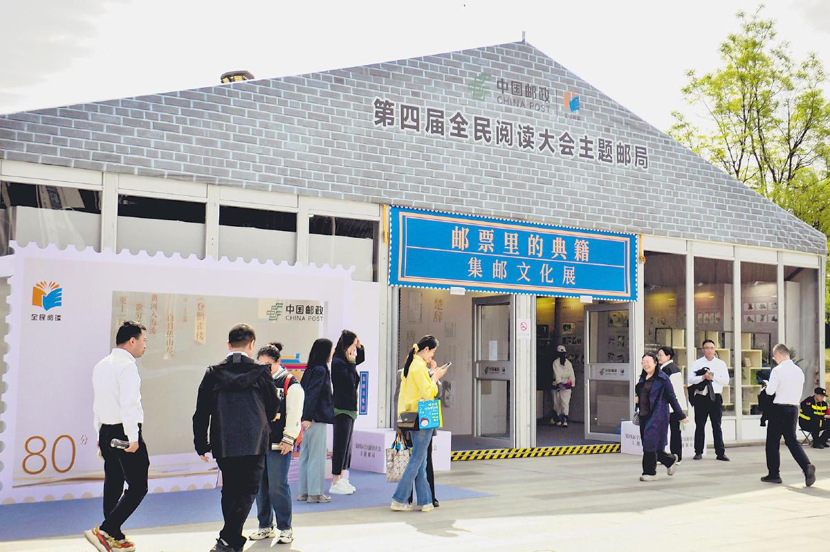 4月23日至27日,由中央宣傳部和山西省委、省政府主辦的第四屆全民閱讀大會在太原舉辦。山西省郵政分公司舉辦了《郵票里的典籍》專題集郵文化展覽,并啟用“第四屆全民閱讀大會”文化日戳1枚。太原市郵政分公司在活動現場設立臨時主題郵局,集中展示各類暢銷報刊及集郵文創產品,并免費提供“第四屆全民閱讀大會”文化日戳和幾十枚地方名勝風光打卡章戳的加蓋服務。□武亞亮 王俊清 楊嘉 攝影報道