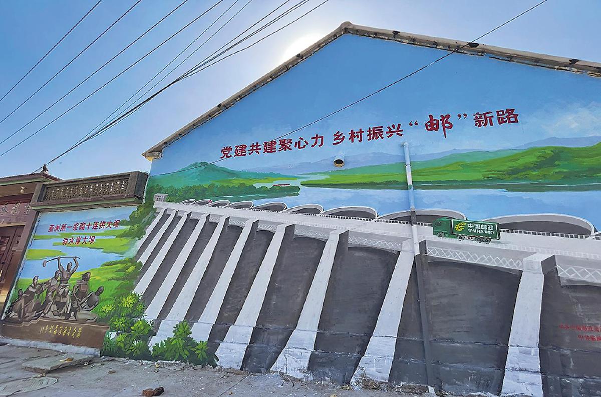 從淌水崖精神到郵政惠民行動,從斑駁磚墻到多彩畫卷,墻繪以文化為筆、以實干為墨,繪就了一幅“產業興、農民富、鄉村美”的壯美圖景,而這抹亮麗的“黨建紅”與“郵政綠”,恰是新時代鄉村振興最生動的注解。