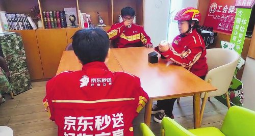 5月21日,北京市金融總工會、北京市郵政分公司、郵儲銀行北京分行與京東集團攜手舉辦京東外賣全職騎手進駐“郵愛驛站”啟動儀式。
