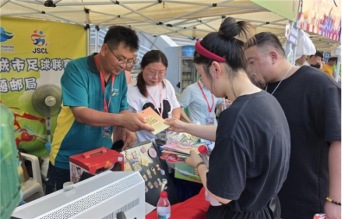 文創賦能,點燃賽場熱度。淮安郵政在賽場設立臨時郵局,創新推出融合地方特色與賽事激情的主題文創產品,如“吃龍蝦 看好球”主題帆布包、《淮安加油》個性化郵票郵折系列。此外,還在現場設有賽事專屬郵資機戳,提供集章打卡與球迷互動體驗,吸引了大批集郵愛好者和足球粉絲踴躍參與,主題文創產品備受球迷青睞。同時,寄遞事業部現場設立EMS寄遞便捷服務點,推出"賽事特惠寄"活動,提供賽事紀念品、運動裝備等寄遞服務,提升用郵體驗。