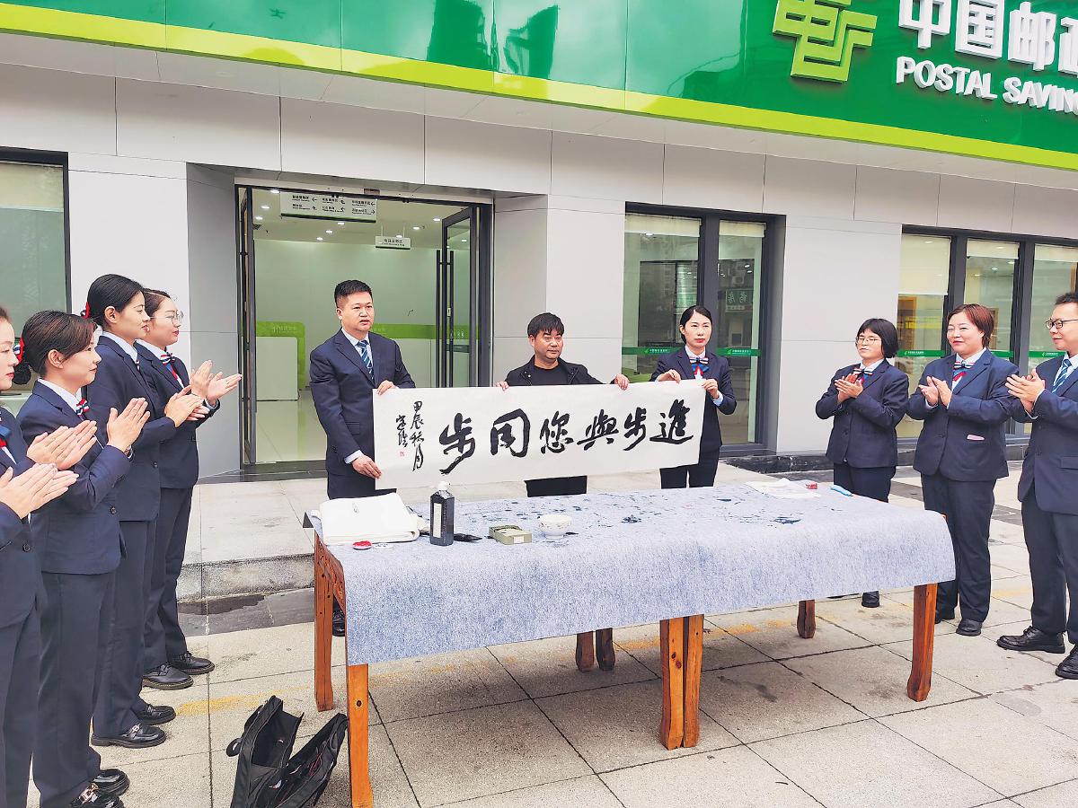除網點環境布置外,印江縣支行持續強化特色服務,以書法為亮點,組織開展主題活動,為客戶提供差異化體驗。該支行邀請書法家協會會員到現場書寫書法作品,并將作品贈予客戶及網點周邊居民。通過常態化開展送對聯、書法知識交流創作等各類文化交流活動,該支行為廣大書法愛好者提供了寶貴的交流平臺,拉近網點與客戶及周邊社區居民的距離。還邀約客戶參加書法主題沙龍,邀請書法老師講解書法知識,讓客戶在感受傳統文化魅力的同時,了解郵儲銀行的文化內涵。通過這些特色活動,該支行構建了“以客戶為中心,以書法為紐帶”的特色服務模式,既營造了文化氛圍、提升了服務質量,也拓寬了客群,促進了網點各項業務的穩健發展。