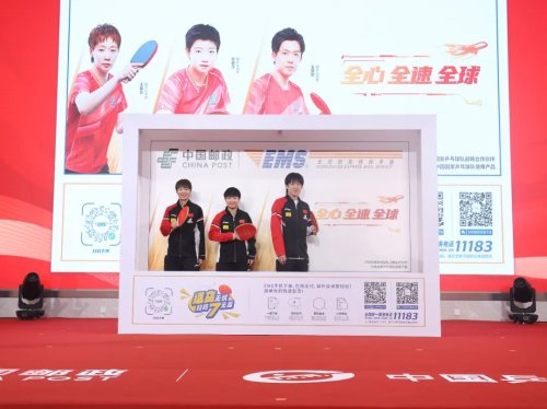 國(guó)乒世界冠軍參與中國(guó)郵政速遞物流(EMS)最新封套的發(fā)布。
