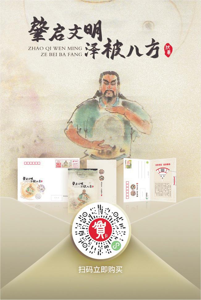 其中,《肇啟文明 澤被八方》明信片的設(shè)計十分新穎,畫面以水墨為底,暈染出伏羲的神韻,仿佛能看到遠古智者的沉思;一幅可轉(zhuǎn)動的八卦圖嵌入其中,輕輕撥動,“乾、坤、震、巽……”這些蘊含宇宙相生規(guī)律的符號緩緩流轉(zhuǎn),如同將“萬事順意、生生不息”的祈愿,通過指尖的觸碰傳遞到心底;配套的定制信封,印刻“羲皇賜福·八卦承吉”字樣,羲皇形象與傳統(tǒng)八卦、祥瑞圖案相互交融。