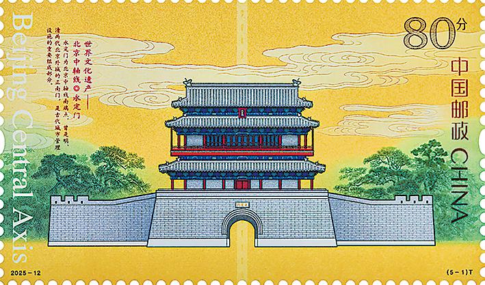 《世界文化遺產——北京中軸線》特種郵票第一枚“永定門”。