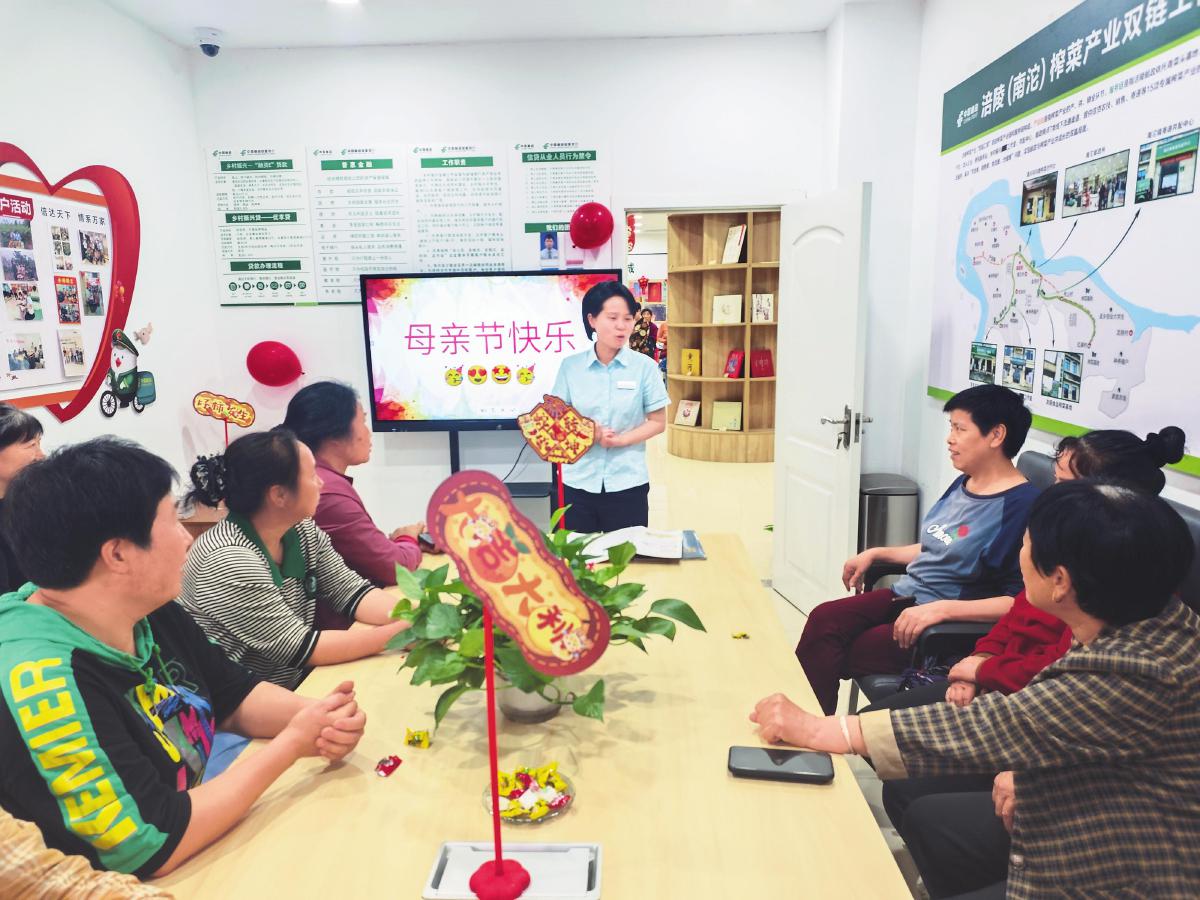除了加強站點運營管理,南沱郵政所還設有政務服務專窗,疊加代辦稅務、社保、交管等政務服務,并開辟出一間鄉村振興工作室。冉冰每周會與郵儲銀行涪陵區支行客戶經理蘇桃溝通交流,或協同處理“融資E”貸款、對公賬戶業務,或一起走訪產業客戶、商戶、小企業主,或一起進村開院壩會,共同推進“村社戶企店”客群開發。