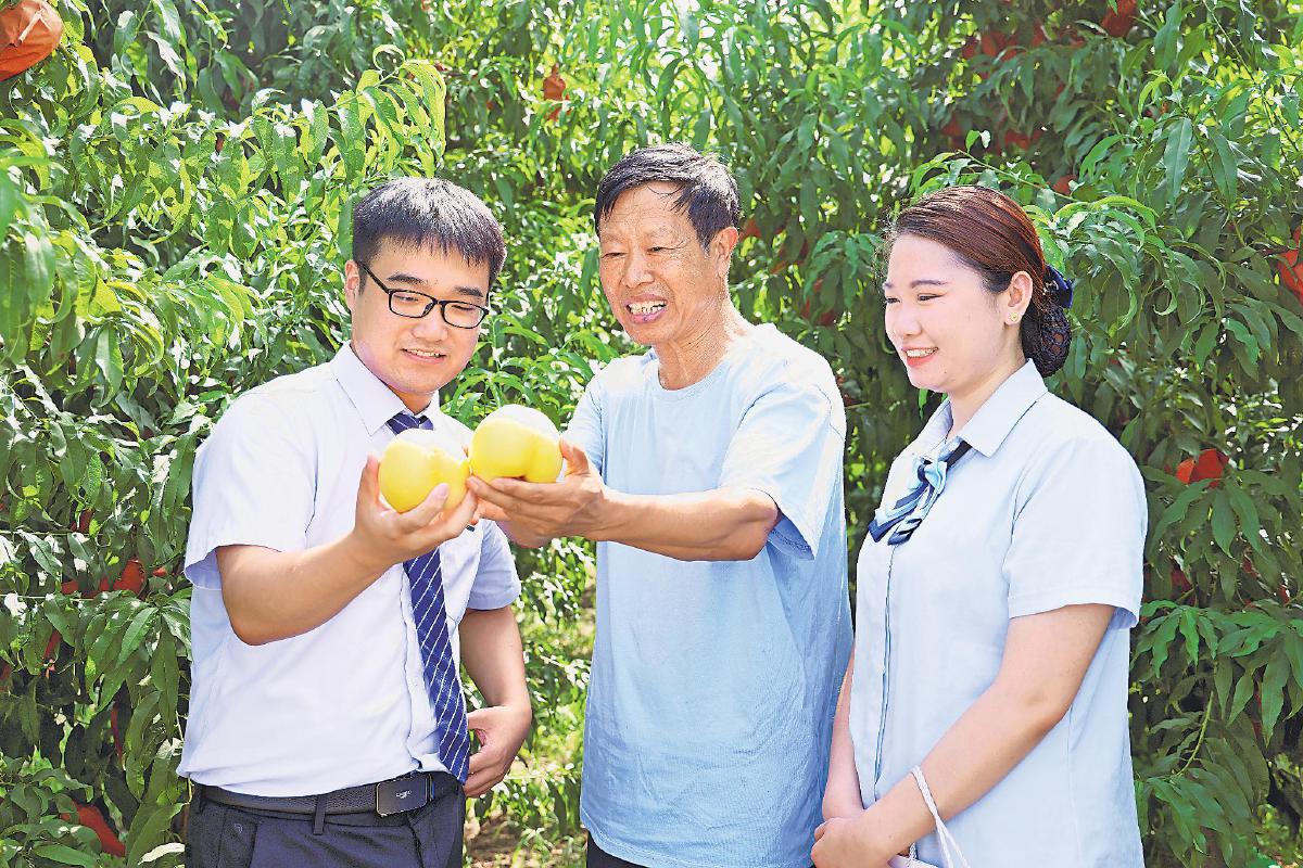 近日,在河北省廊坊市永清縣富民合作社的桃子豐收之季,郵儲銀行永清縣支行客戶經(jīng)理深入桃園,詳細(xì)了解桃子的長勢,與果農(nóng)分享豐收的喜悅,并向果農(nóng)講解綜合金融服務(wù)方案,為其解決“融資難”“結(jié)算難”“記賬難”等問題。
