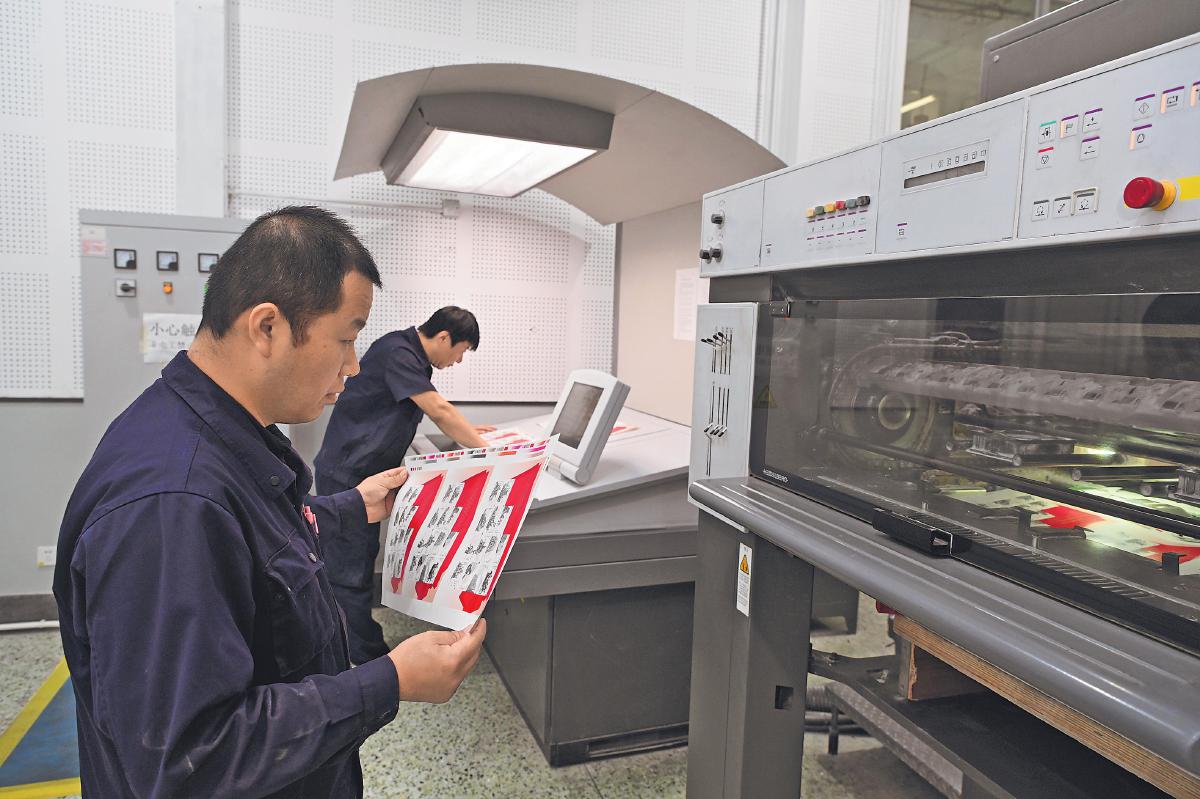 8月26日圖稿正式批復(fù),此時距離郵票發(fā)行僅剩8天。面對“時間緊、任務(wù)重、要求高”的嚴峻挑戰(zhàn),“人、機、料、法、環(huán)”的全方位籌備體系為這套郵票印制的高質(zhì)量推進提供了堅實保障:100余名生產(chǎn)人員迅速投入緊張生產(chǎn),保持24小時不停機運轉(zhuǎn);“上道工序為下道工序著想,下道工序為上道工序服務(wù)”的優(yōu)良傳統(tǒng)有效落地,各工序間銜接高效順暢。