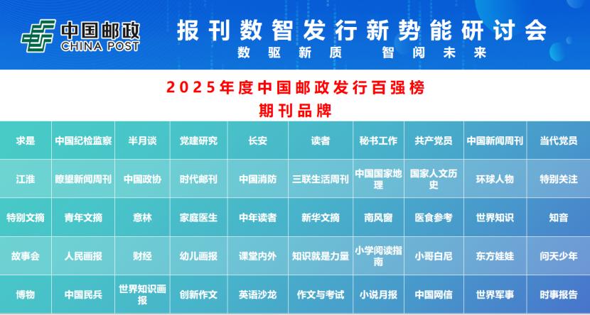 會上,集團公司報刊發行局發布了備受關注的“2025年度中國郵政發行百強榜”,包括《人民日報》、《光明日報》在內的40家報紙品牌,《求是》、《中國紀檢監察》等50家期刊品牌,以及參考消息數字報、人民日報健康客戶端等10家數媒品牌上榜。此次百強評定綜合考慮了郵發報刊的發行量、品牌影響力、媒體融合發展的貢獻度等多個指標。此外,報刊發行局在此次會上還與河南日報報業集團、《人民論壇》雜志社、中國交通報社、中國農業出版社、中航出版傳媒有限責任公司以及《財經》雜志等多家單位簽訂戰略合作協議,標志著中國郵政在報刊數智發行領域合作網絡的進一步拓展。