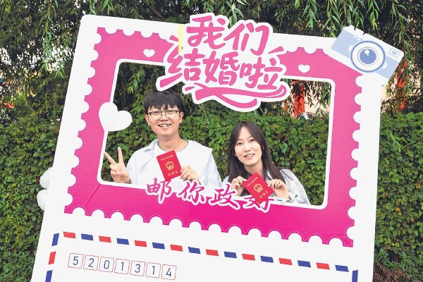 8月29日是七夕節,云南省宜良縣郵政分公司聯合縣民政局在婚姻登記處共同策劃組織了一場別具特色的集體婚禮頒證活動,郵政“幸福驛站”成為新人們爭相拍照的浪漫地標。