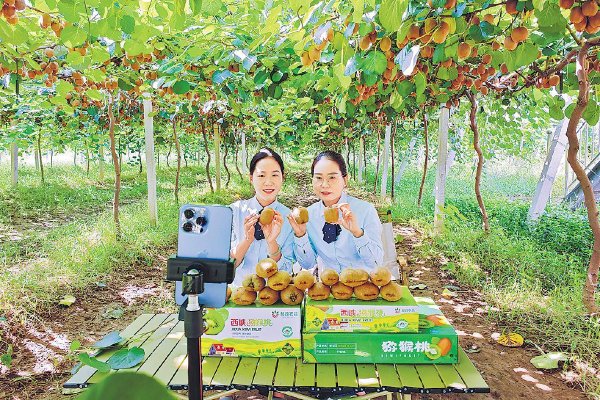 南陽郵政直播團隊開展西峽獼猴桃助農直播。