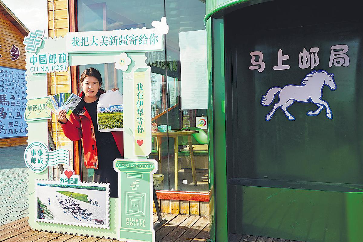在昭蘇縣天馬文化園,主題郵局以豐富多彩、獨具創意的文創服務為游客留下美好回憶。