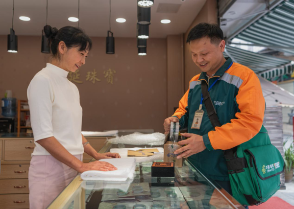 “小楊服務(wù)態(tài)度好,一打電話馬上上門,包裝產(chǎn)品比我們自己還要仔細(xì)?!鄙虘襞苏愐贿厡⒖蛻艟奶暨x的翡翠手鐲交給楊世謙,一邊由衷稱贊。對她這樣的商戶而言,郵政提供的不僅是寄遞服務(wù),更是一份沉甸甸的信任保障。楊世謙的腳步,不僅串起了商戶與千里之外的市場,也讓郵政的“靠譜”形象,成為這條財(cái)富之路上最令人安心的一抹綠色。