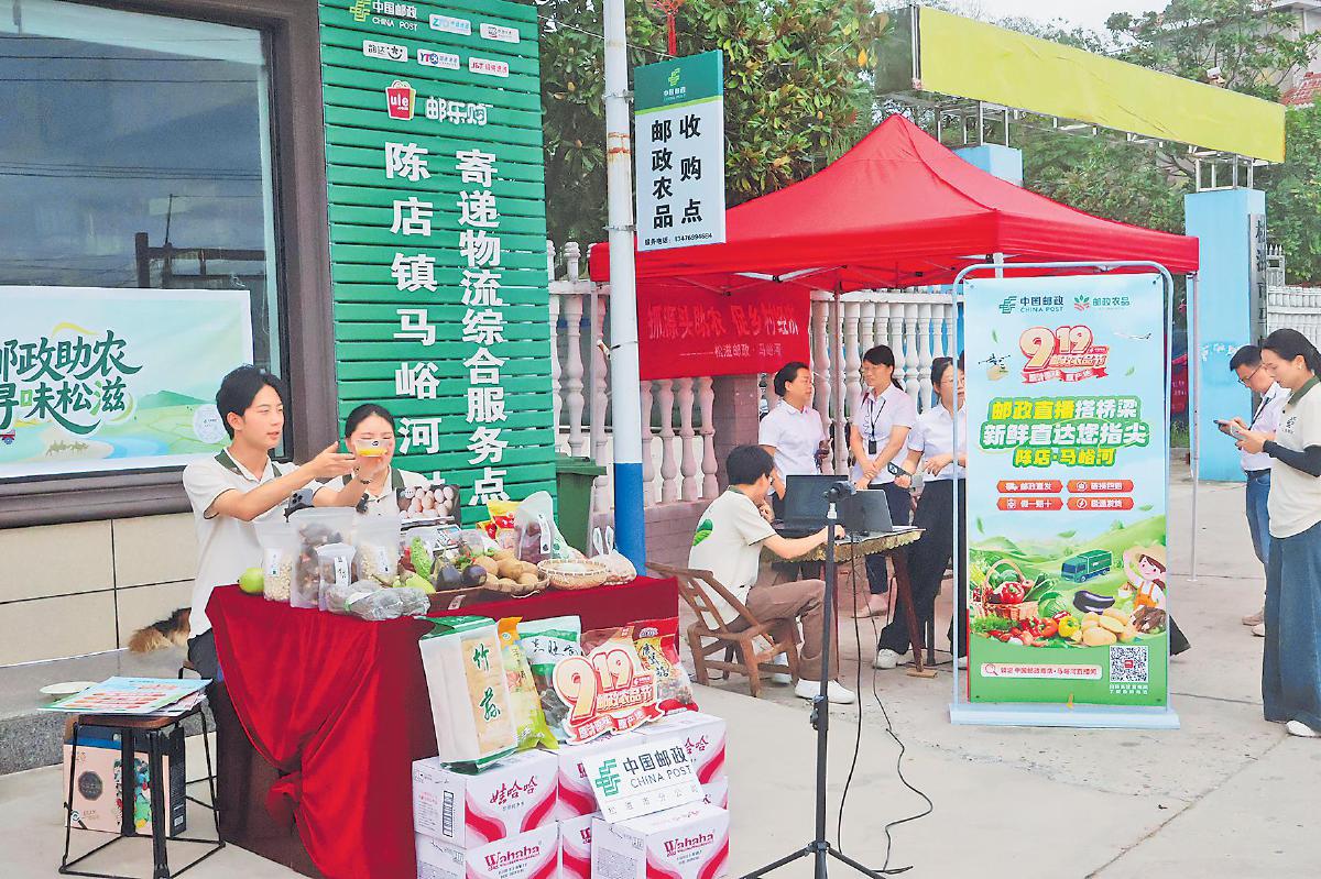 松滋郵政進(jìn)村駐點(diǎn)開展直播,從源頭推介農(nóng)產(chǎn)品。