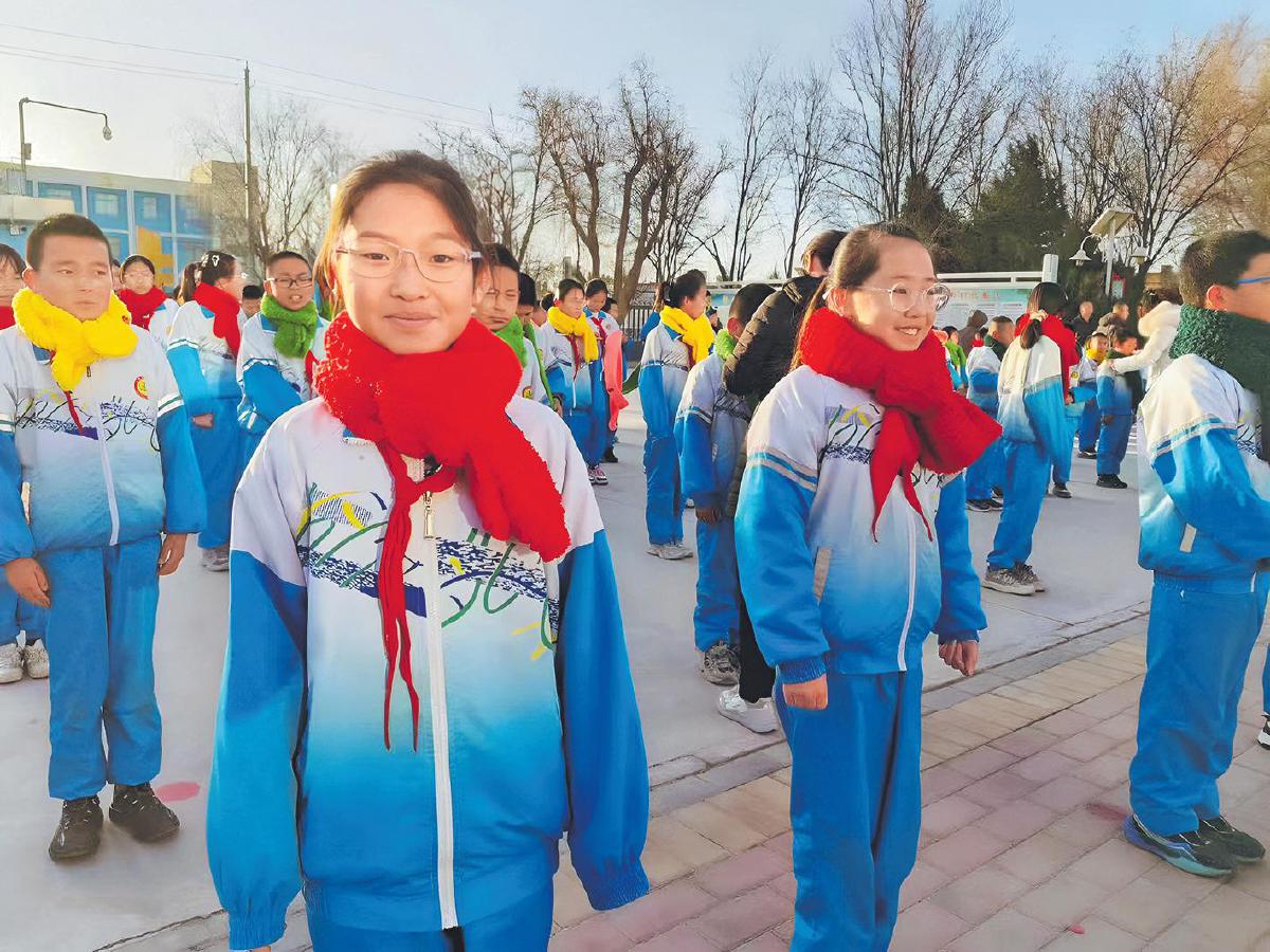 黨員先鋒模范作用的充分發揮,讓打包效率大幅提升、流程更加順暢,也讓愛心傳遞更有溫度。12月10日,首批220條愛心圍巾已順利抵達甘肅省金昌市金川區雙灣鎮中心小學。孩子們圍上色彩鮮艷的圍巾,瞬間被濃濃溫情包裹,稚嫩的臉上洋溢著燦爛笑容(見下圖)。目前,松門義工隊捐贈的820條圍巾正加急發往云貴川地區,剩余包裹已全部寄出,預計一周內將陸續送達目的地。