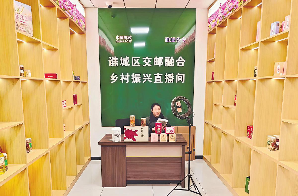 亳州市譙城區(qū)郵政分公司十河營業(yè)所員工在進(jìn)行助農(nóng)直播。