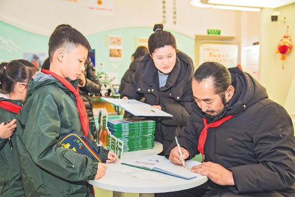 活動(dòng)尾聲,其美多吉與兒童郵局的師生,在點(diǎn)綴著馬年新春元素的郵局前并肩合影。鏡頭定格下一張張燦爛笑臉,孩子們眼中被榜樣精神點(diǎn)亮的光芒,比現(xiàn)場(chǎng)的年味裝飾更顯耀眼。(圖為贈(zèng)書環(huán)節(jié),其美多吉為學(xué)生在繪本上簽名。)