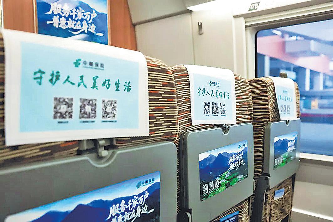 此次中郵保險(xiǎn)品牌專列覆蓋網(wǎng)絡(luò)廣闊,以北京、上海、廣州、哈爾濱為主要始發(fā)點(diǎn),廣泛輻射東北、華北、華東、華中、華南、西南及西北地區(qū)的立體傳播網(wǎng)絡(luò),精準(zhǔn)連接中郵保險(xiǎn)各省級(jí)分公司服務(wù)區(qū)域,觸達(dá)核心受眾。列車上,中郵保險(xiǎn)品牌以多元媒體形式全方位貼近旅客,車身外彩貼、座位頭片、桌貼、海報(bào)、品牌天幕(行李架)、車外門貼、車廂內(nèi)播音提示及LED顯示屏等多種載體,共同營(yíng)造出沉浸式服務(wù)氛圍。
