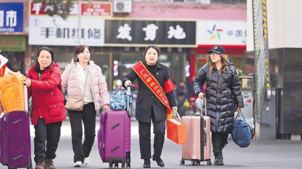 2月9日,安徽省青陽縣郵政分公司聯合縣人社局,在浙江臺州高鐵站免費接務工老鄉返鄉。 □寧婷 攝
